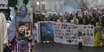 د بلوڅ پیوستون شورا غړو په اسلام اباد کې د نیشنل پریس کلب مخې ته ...