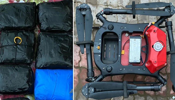 د اے این ایف ترجمان وینا ده چی د خفیه اطلاع په بنیاد ڈی ایچ اے لاهور سره نزدی یو ګاډی ودرول شو چی په لاره کښي ئي اووښتی دی ولی ملزم په موقع باندی نیولی شوی دی، د ګاډی تلاشئ په مهال د ګاډی نه لس کلوګرامه هیروئین او یو ډرون برآمد شوی دی. د يو کيلو هيروئينو يوه کڅوړه د بې پيلوټه الوتکې سره نښلول شوې وه.