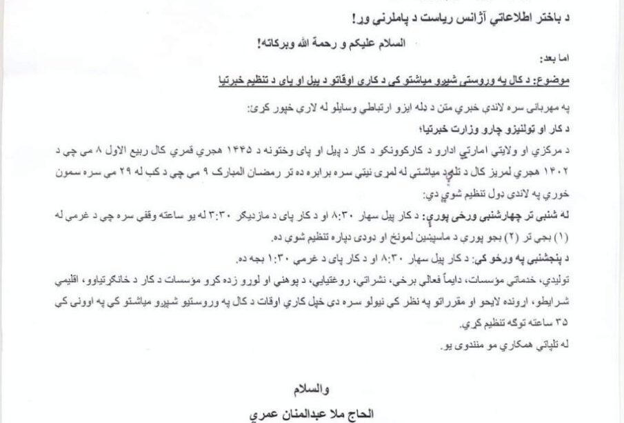 د روان کال په دویمو شپږو میاشتو کې د افغان دولتي ادارو د کاري ساعتونو بدلون