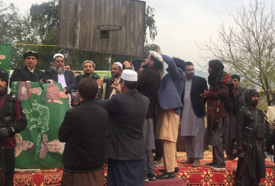 ستاتور تاج محمد افریدی شمولیتي غونډې ته وینا کوي.