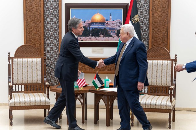 بلنکن پس از دیدار با محمود عباس، رئیس تشکیلات خودگردان فلسطین در رام الله، ابراز همدردی و تاسف خود را برای غیرنظامیان بیگناه فلسطینی که در جریان خشونت های خشونت آمیز سال گذشته جان خود را از دست دادند، ابراز کرد.