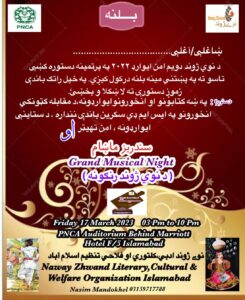 نوې ژوند فلاحي او کلتورې تنظیم د امن ایوارډ ۲۰۲۲ دستوره به په ۱۷ مارچ اسلام آباد کښې ترسره شي
