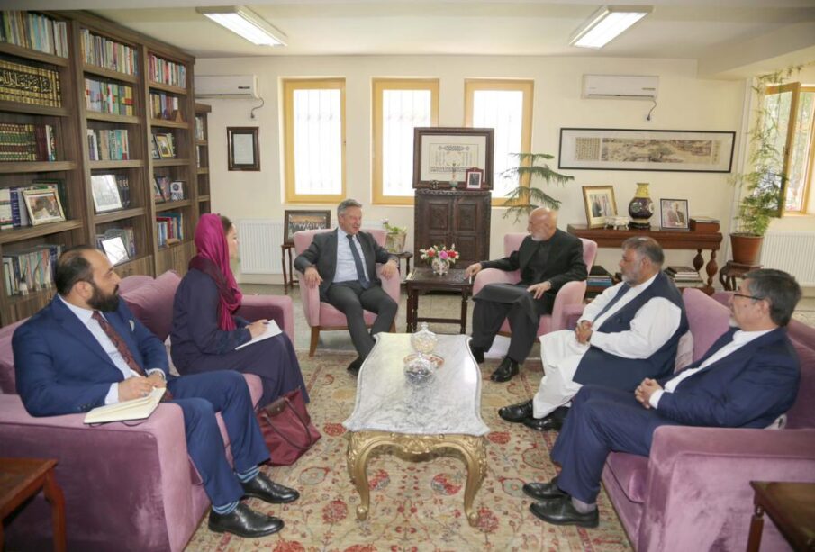 حامد کرزی رئیس جمهور پیشین افغانستان با مارکوس پوتزل معاون نماینده ویژه سازمان ملل متحد در امور افغانستان دیدار کرد.