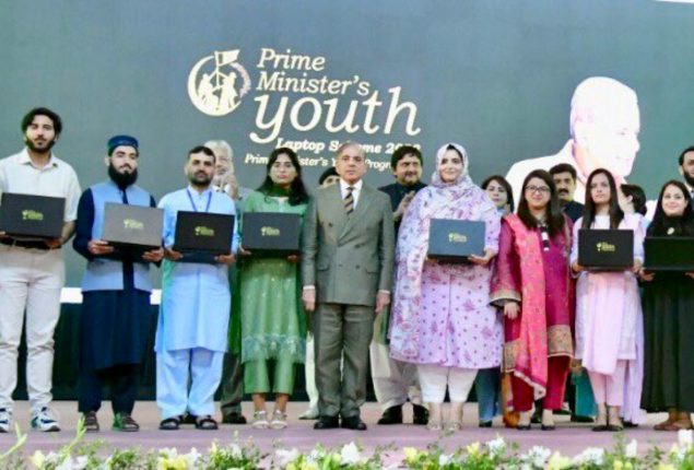 پيښور کښې د ليپ ټاپ ويشلو په دستوره کښې وزيراعظم شهباز شريف ګډون اوکړو۔