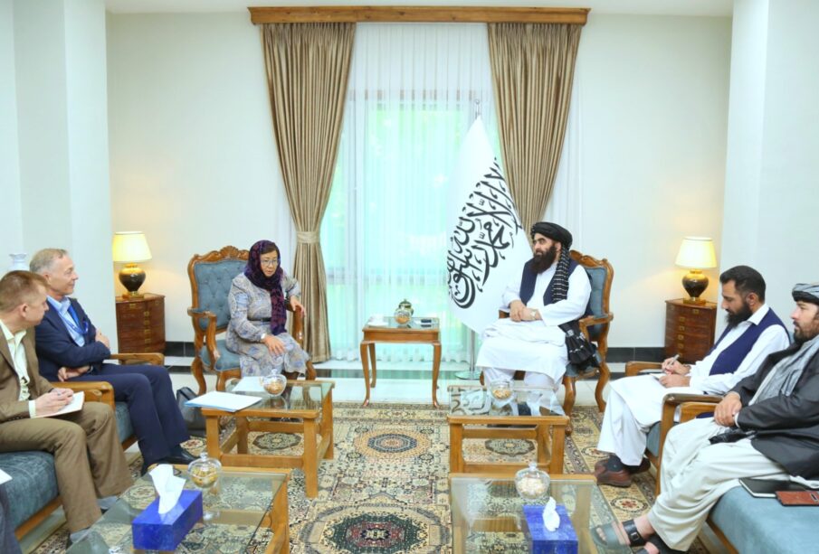 د افغانستان اسلامي امارت د بهرنیو چارو وزارت له لورې په یوه تازه خپره شوې خبرپاڼه کې راغلي چې په افغانستان کې د ملګرو ملتونو د سرمُنشي ځانګړې استازې، آغلې روزا اتونباييفا، او د يوناما مرستيال او د بشري امورو نوي مسؤول، ښاغلي ډانيل انډريس، د بهرنيو چارو له وزير، مولوي اميرخان متقي، سره وليدل.