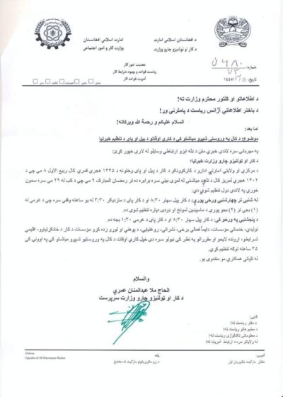 د روان کال په دویمو شپږو میاشتو کې د افغان دولتي ادارو د کاري ساعتونو ...
